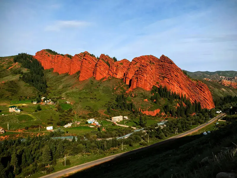 Another amazing place on the Great Silk Road trail is Jeti-Oguz gorge located 28 km from Karakol. The name is translated as “Seven bulls”; the red cliffs of the gorge look like bulls standing side by side.