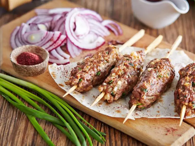 Армяне любят мясо. Ни один праздничный стол не обходится без мясных блюд. Именно поэтому часто у вегетарианцев и веганов возникает вопрос: «что же попробовать в Армении?». Мы еще поговорим об овощных блюдах, ну а сейчас представляем стол исключительно из мясных блюд. В центре, конечно же, стоит шашлык из баранины, свинины или телятины. Его готовят в тандыре и подают с лавашом и луком. Рядом стоит ассорти долмы – летняя долма (фаршированные овощи), долма из капусты и традиционная из виноградных листьев.