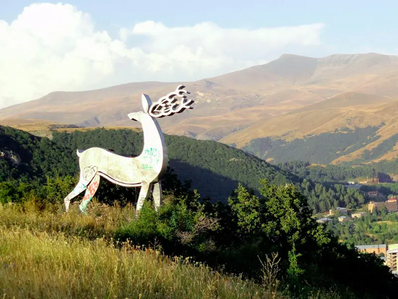Jermuk is a picturesque resort town of Armenia, famous for its therapeutic mineral waters. Every year hundreds of people come here to improve their health. The symbol of the town is a deer, and on the top of the hill, there is even a statue of a deer, looking over the landscape. This symbol is not accidental – there is an interesting legend associated with it. A long time ago in the forests of Jermuk, there were different wild animals, and people often went hunting in the woods for prey. One day a hunter wounded a deer with an arrow, and the animal, gathering the last strength, rushed to flee. The hunter followed the deer and suddenly saw him jumping into the lake, filled with mineral water. A moment later, the deer emerged from the water and there was not a trace of the wound on it. The amazed hunter returned to the village and told everyone about the miraculous properties of Jermuk water. The rumor about its healing properties spread over many cities and villages and the deer became the symbol of Jermuk.