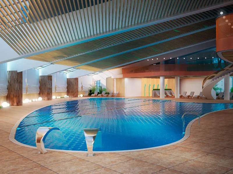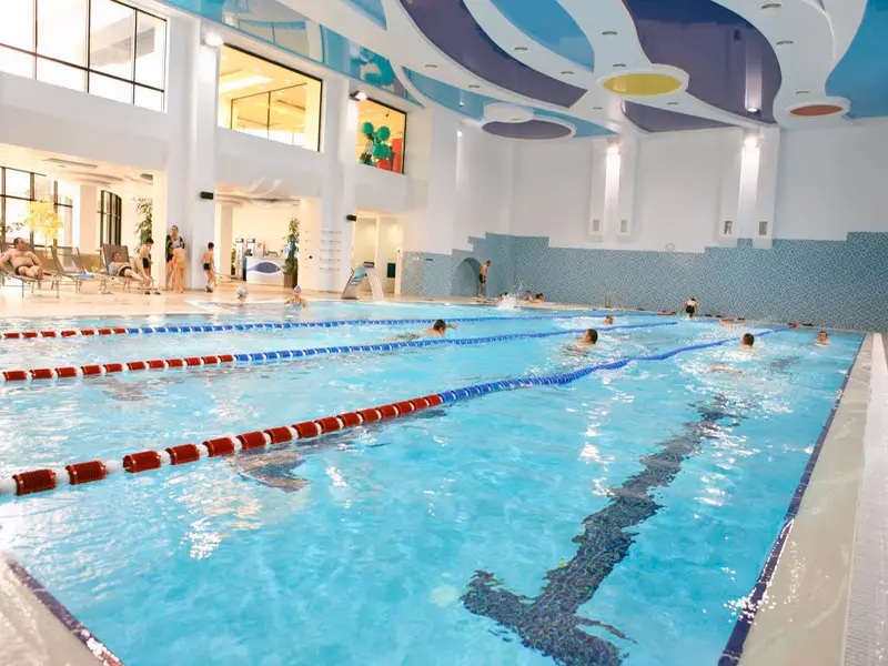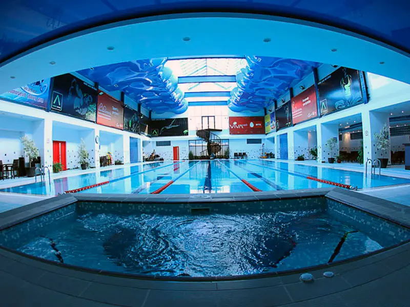 For lovers of swimming, the sports complex is equipped with 2 ultra-modern swimming pools: 50-meter Olympic swimming pool for professionals and a 25-meter with a Jacuzzi for those who like to laze in the water and swim for fun. Here all the conditions are provided to enjoy with family or friends. Here you can play basketball, billiards, tennis, beach volleyball, mini-football, table tennis, and in the summer to swim in the outdoor pool and soak up under the sun while enjoying a refreshing cocktail.