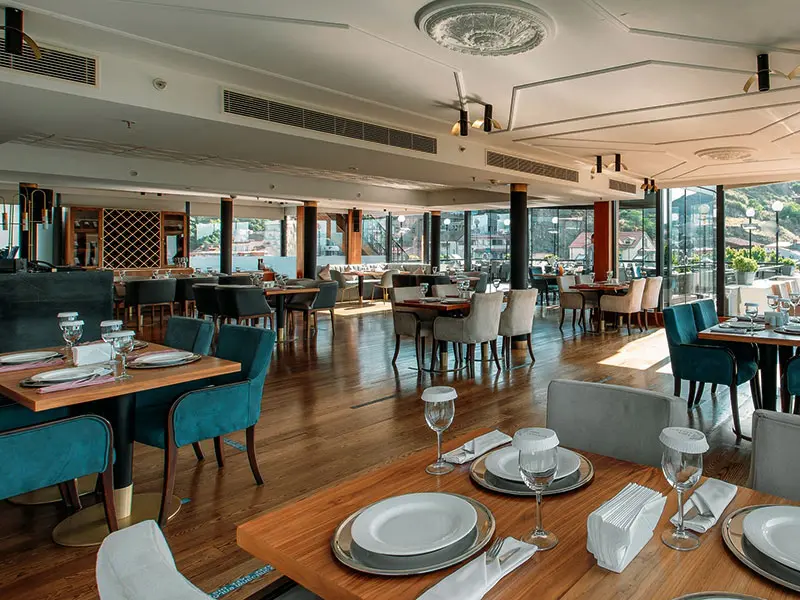 Panorama is the largest restaurant in Ajara, situated in the vibrant city of Batumi. It is a multi-level complex a 360° view, it offers an incredible view of the Black Sea and Batumi's dynamic skyline. This rooftop restaurant is part of Orbi Hotel located at Sh. Khimshiashvili Street 7. The menu at Panorama features a mix of Georgian and international dishes, emphasizing fresh seafood and local flavors. The elegant setting, combined with the stunning coastal views, makes Panorama a perfect spot for a memorable dining experience in Batumi.
