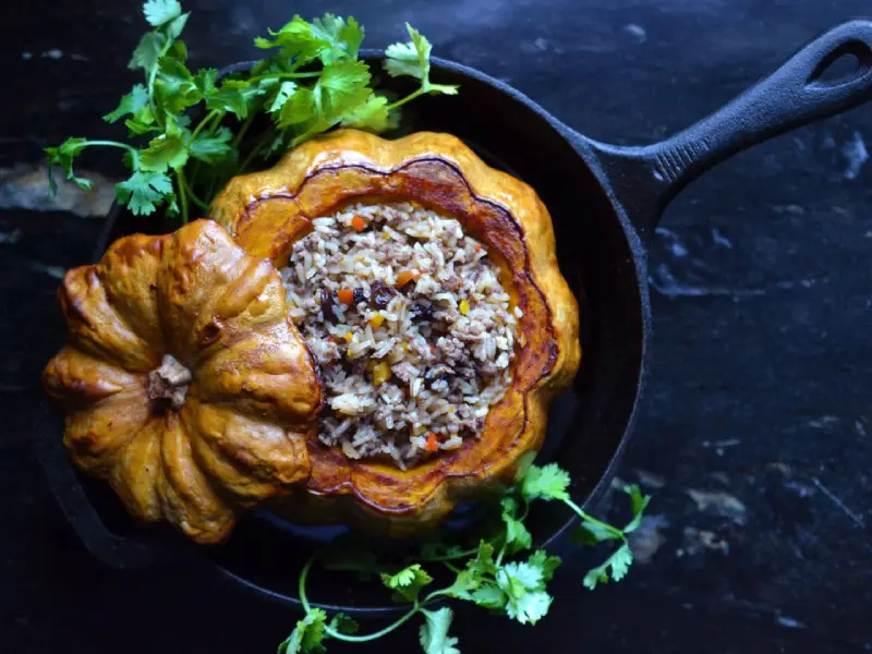 Soups and vegetable dishes are placed next to the aromatic meat dishes. The crown dish in autumn is ghapama. This colorful dish is prepared from pumpkin stuffed with rice, dried apricots, raisins, nuts, and spices. By the way, raisins and dried fruits are often used in Armenian dishes. Thus, traditional rice pilaf with raisins is served for Easter, it is made from rice and raisins.