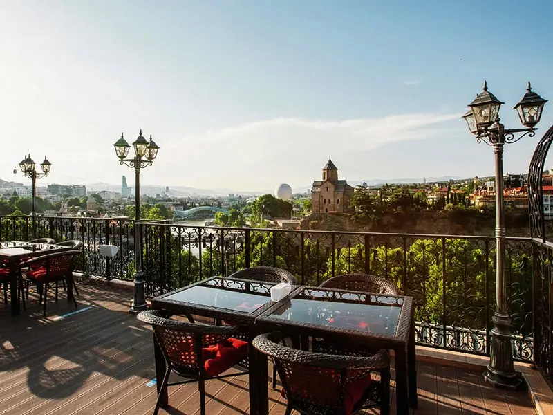 Tiflis Veranda — это элегантный ресторан, расположенный на крыше отеля Tiflis Palace на улице Горгасали, 3. Он предлагает изысканный обеденный опыт с потрясающим видом на Старый город Тбилиси и реку Кура. Элегантный декор ресторана и терраса на крыше создают идеальные условия для романтического ужина или особого празднования. Меню включает разнообразные грузинские и международные блюда, мастерски приготовленные для удовольствия гостей. С его потрясающими видами и исключительным обслуживанием, Tiflis Veranda является лучшим выбором для незабываемого обеденного опыта в Тбилиси.