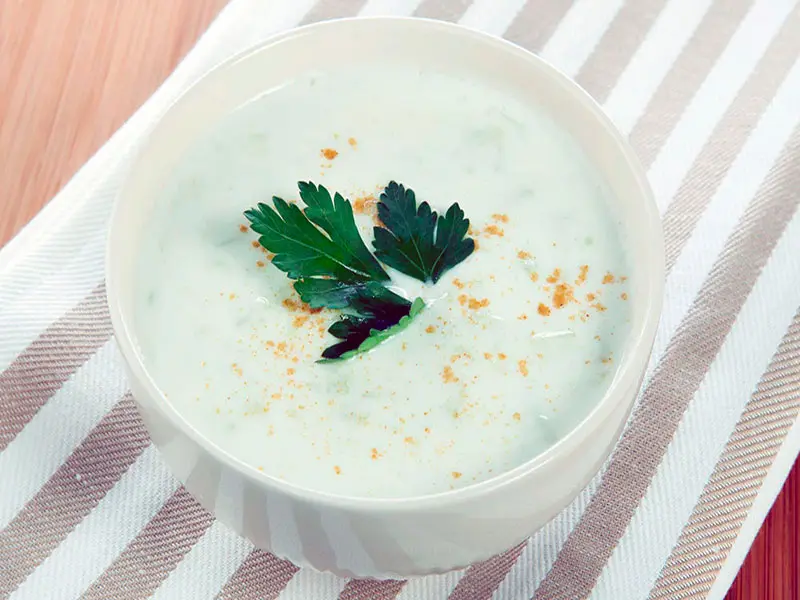 Ингредиенты: Мацони (кисломолочный продукт) – 200 г Сметана – 2 ст.л. Мука – 1 ст.л. Яйцо – 1 шт. Лук репчатый – 1шт. Пшеница (по желанию можно использовать рис) – 4 ст.л. Зелень (по вкусу) Соль |
