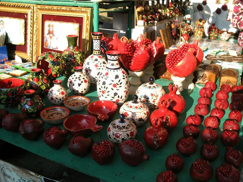 Невозможно представить туриста, который приехав в Армению, не захочет посетить Вернисаж. Вернисаж – это популярная армянская ярмарка, которая начинается со станции метро “Площадь республики” и простирается по всей улице Ханджяна. Каждую субботу и воскресение ярмарка становится домом для сотен художников, ювелиров, гончаров и других мастеров. Они представляют свои удивительные колоритные работы, которые может преобрести любой желающий. Здесь вы найдете картины разных художников, армянский дудук, полудрагоценные камни, кинжалы, ковры, национальные украшения и другие произведения искусства и сувениры. Если вы захотите купить армянские сувениры на память- смело отправляйтесь на Вернисаж и вы точно не уйдете оттуда с пустыми руками!