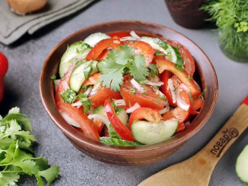 Летний салат из огурцов и помидоров, приправленный зеленью и луком, является обязательным блюдом для армян в теплое время года. Этот простой освежающий салат особенно вкусен в Армении, так как овощи здесь имеют невообразимый вкус и аромат. Заказать летний салат можно в любом ресторане.