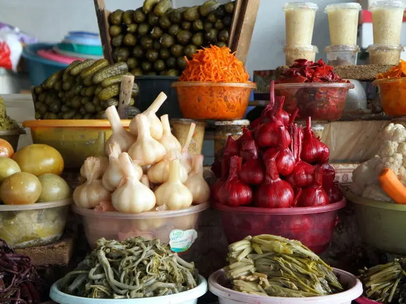 В Армении обожают солить все, что только растет на огородах. Поэтому в магазинах и на рынках вы всегда найдете множество вариантов маринованных и засоленных овощей, а также разнообразной зелени. Засоленные помидоры, огурцы, капуста, цветная капуста, бамия, баклажаны, острый перец, зелень – все это вы найдете как на полках магазинов и супермаркетов, так и на продуктовых рынках. Самым известным рынком в Ереване считается ГУМ (ул. Мовсеса Хоренаци 35), здесь вас ждет яркая палитра всевозможных солений. В Армении также можно попробовать очень вкусную квашеную капусту, которую готовят местные Молокане. Капусту также можно купить на продуктовых рынках.