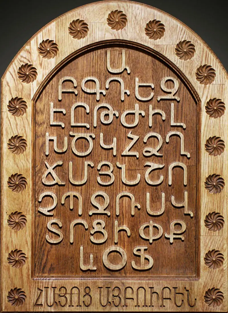 Армяне используют свой уникальный алфавит, который был создан в 405 году ученым и священником Месропом Маштоцом. Сейчас алфавит насчитывает 39 букв.