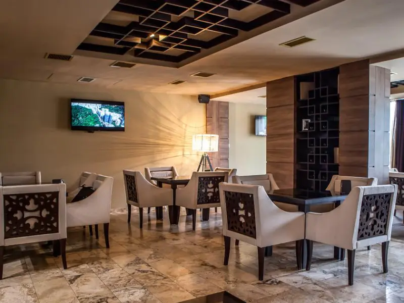 Двухэтажный ресторан с зимним садом сразу привлекает внимание своим шикарным экстерьером. Переступив порог ресторана, главное не потерять голову от ярких оттенков декора и декоративных растений. Одним словом – это настоящий рай для тех, кто обожает фотографироваться.