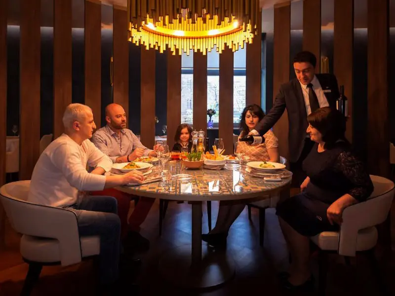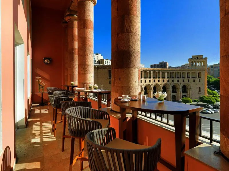 Отель Marriott Armenia Yerevan располагается в самом центре Еревана прямо напротив Площади Республики. Расположение отеля безупречно: рядом можно увидеть уютные кафе и рестораны, банк, Национальный Исторический музей, здание правительства, а вечером в теплое время года включают известные поющие фонтаны, и можно любоваться красочным шоу каждый вечер прямо из своего номера. А до роскошного Северного Проспекта, ведущего к известному зданию Оперы и Балета – рукой подать. В десяти минутах ходьбы от отеля располагается популярная среди туристов ярмарка Вернисаж, где можно приобрести разнообразные колоритные сувениры. Сам отель принадлежит к классу пятизвездочных и предлагает просторные звукоизолированные номера, оформленные в классическом стиле, а также 5 ресторанов и баров, предлагающих блюда интернациональной кухни, конференц-зал, спа-центр, салон красоты, тренажерный зал, бесплатную парковку и интернет на территории всего отеля. Почти все туристы, остановившиеся в данном отеле, отмечают гостеприимство и внимательность персонала.