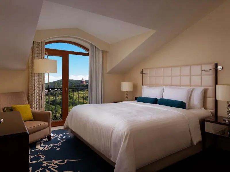 Отель бренда “Marriott” располагается также в одном из самых известных горнолыжных курортов Армении – Цахкадзоре. Его открытие состоялось в 2012 году, и он стал вторым в сети Marriott в Армении. Marriott Tsakhkadzor предлагает 100 комфортных номеров, а также 7 вилл, каждая из которых предназначена для отдыха и бизнес туров. Здесь к вашим услугам также 5 ресторанов и баров, бильярд, крытый бассейн с подогревом, спа-центр, тренажерный зал, теннисные корты и поля для командных видов спорта. Для желающих провести здесь бизнес встречи или конференции есть прекрасно оборудованный конференц-зал вместимостью до 400 человек.