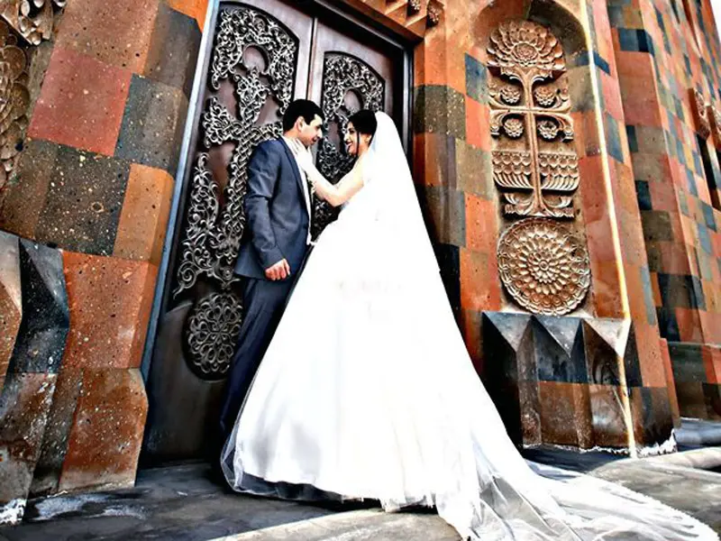 пригородных живописных районах, в древних и уютных церквах. Окружающие красоты добавляют незабываемые впечатления этому прекрасному дню. Например, очень популярно проводить венчания в таких великолепных местах, как Эчмиадзин, Гегард и мн др.