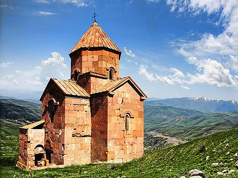 The church of St. Stepanos or Lmbatavank is located on the northwestern slope of the Shirak plateau, 2 km from the town of Artik. The cross-domed basilica with an octagonal tower was built in the VI century. The wall paintings of the church are considered the most valuable and well-preserved specimens of the 7th century. On the walls, there were preserved the donations of the XII century by the Pahlavuni clan. On the outer walls, there are partially preserved frescoes in which the scene depicting of the “Appearances of God”, the fresco of the throne of Jesus Christ, the images of St. Gevorg and St. Sargis, the fragments of frescoes with twelve apostles and the Mother of God.