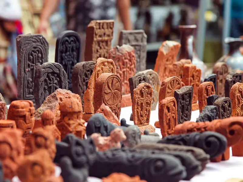In the culture of any nation, there are unique symbols that cannot be met anywhere else. For Armenians, such symbols are khachkars – stone steles with the depiction of a cross, which have no analogs in the world. In Armenian “khach” means “cross”, and “kar” – “stone”. The history of the origin of these cross-stones dates back to many years ago and is connected with the adoption of Christianity in 301. Bringing back a small khachkar souvenir can be a meaningful and symbolic gift representing Armenian artistry and spirituality. Khachkar souvenirs can be found at the open air fair Vernissage. Learn more about khachkars here.
