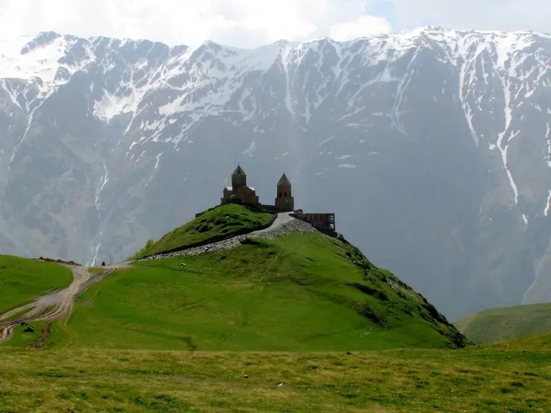 In Stepantsminda go up to the Gergeti Church, located at an altitude of 2170 m. The trip to the church will take about 2-2,5 hours by foot and 1-1.5 hours by car. If you are traveling without a car you can take a taxi from the center of the settlement. It will cost approximately 50 GEL to reach the church by taxi. The top of the hill offers an unforgettable view of the village and the famous Mount Kazbek.