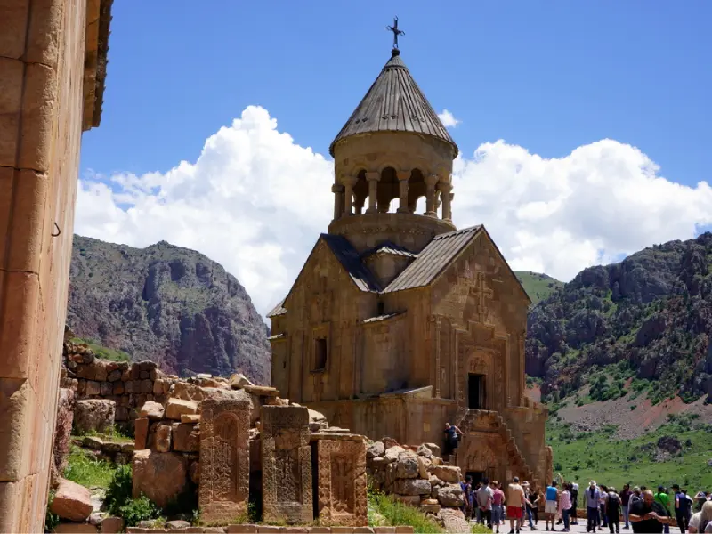 If you are traveling by car, we advise you to continue on your way to the Noravank Monastery located in the valley of red rocks. On the way, make a stop in the village of Areni, which is considered the center of winemaking in Armenia. Ancient wine-making equipment, which is six thousand years old, was discovered here. The region is known for its endemic Areni grape variety used for the production of local red wine. In Areni you can visit a small winery and taste local wines.